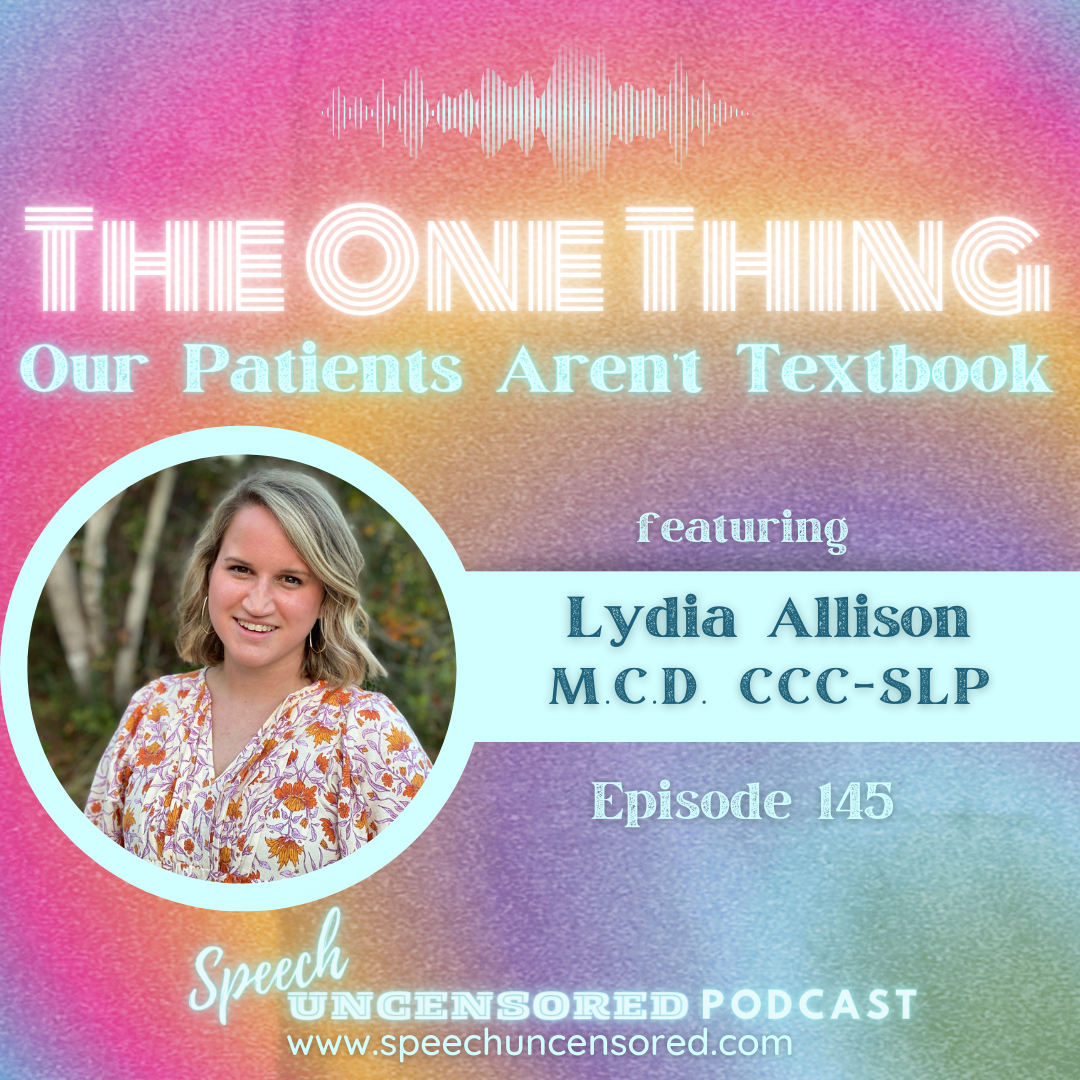 145: The One Thing: Our Patients Aren’t Textbook with Lydia Allison MCD, CCC-SLP